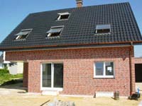 Bei diesem Gebäude handelt es sich um ein freistehendes Einfamilienhaus mit Garage. Das Gebäude ist in 1 ½ - geschossiger Bauweise mit ausgebautem Dachgeschoss und Spitzboden, sowie Vollunterkellerung gebaut worden. Aufgrund der Bodenverhältnisse wurde der gesamte Keller als „weiße Wanne“ ausgebildet. Die Fassade ist verklinkert worden.