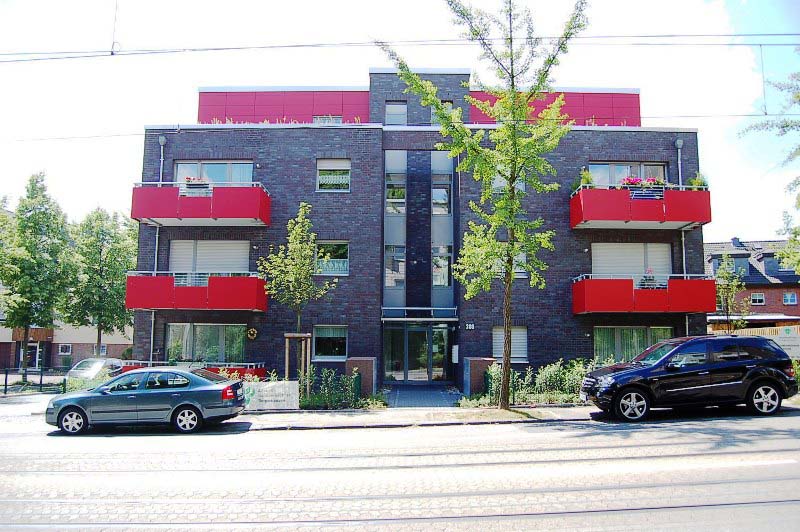 Aufgrund der Bodenverhältnisse wurden beide Keller als „weiße Wanne“ ausgebildet. Die Fassade wurde mit einem grau – bunten Klinker verklinkert. Aus gestalterischen Gründen wurden die Staffelgeschoss- und Balkonbekleidungen mit roten Platten ausgeführt. Die technische Gebäudeausrüstung wurde in gehobenem Standard geplant. Als Heizungsanlage wurde eine Gas – Brennwert - Anlage eingebaut. Die Wohnungen wurden mit den entsprechenden Einrichtungen für Senioren ausgestattet.